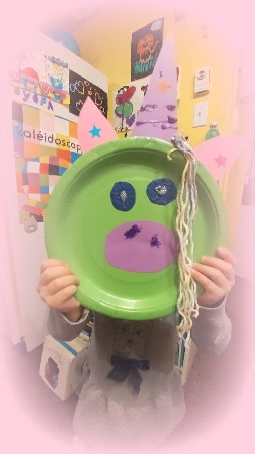 - Tracer sur du carton de couleur la corne, les oreilles, le museau et les yeux. Découper.